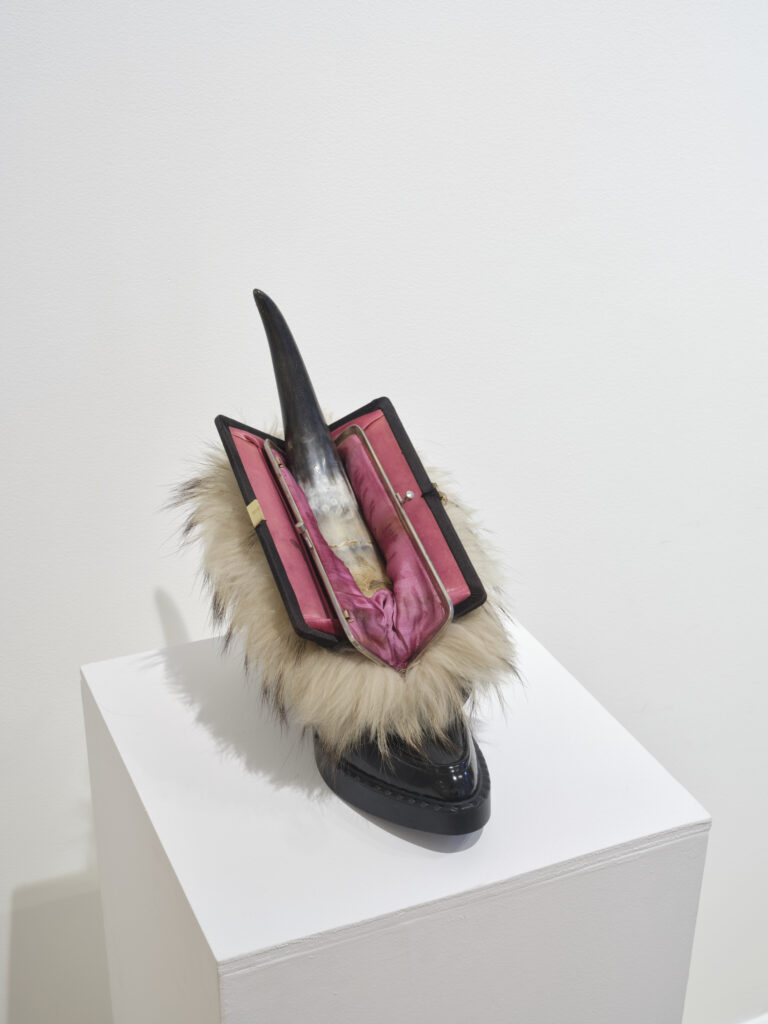 Sex, Sexuality, and Society – CHILE / Used shoe, animal horn, fur, purse / 12.5″ × 7″ × 11″ / USA
